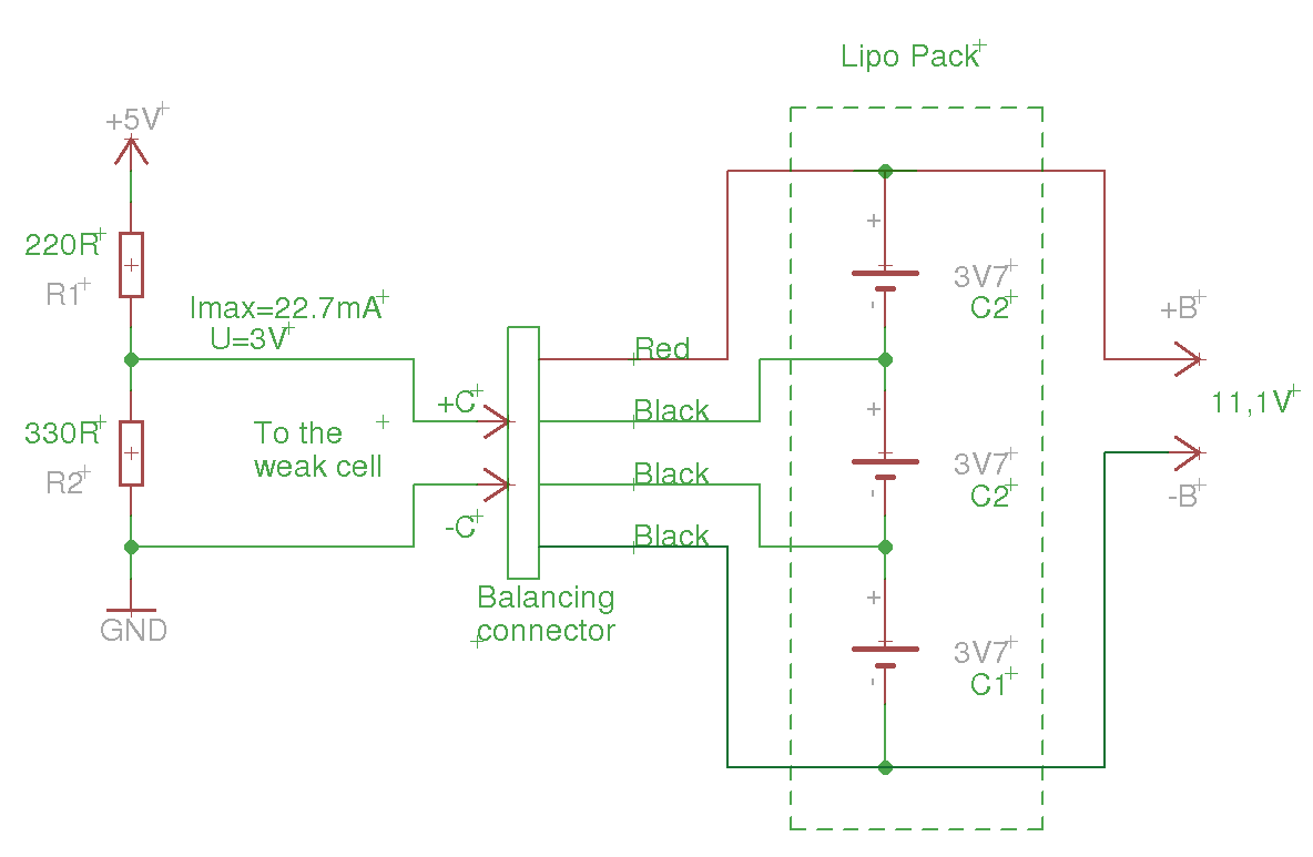 In this example the Cell C2 is connected, so as showen, check the polarity before connecting the cell, other wise if connected wrong it will be discharged not charged!
