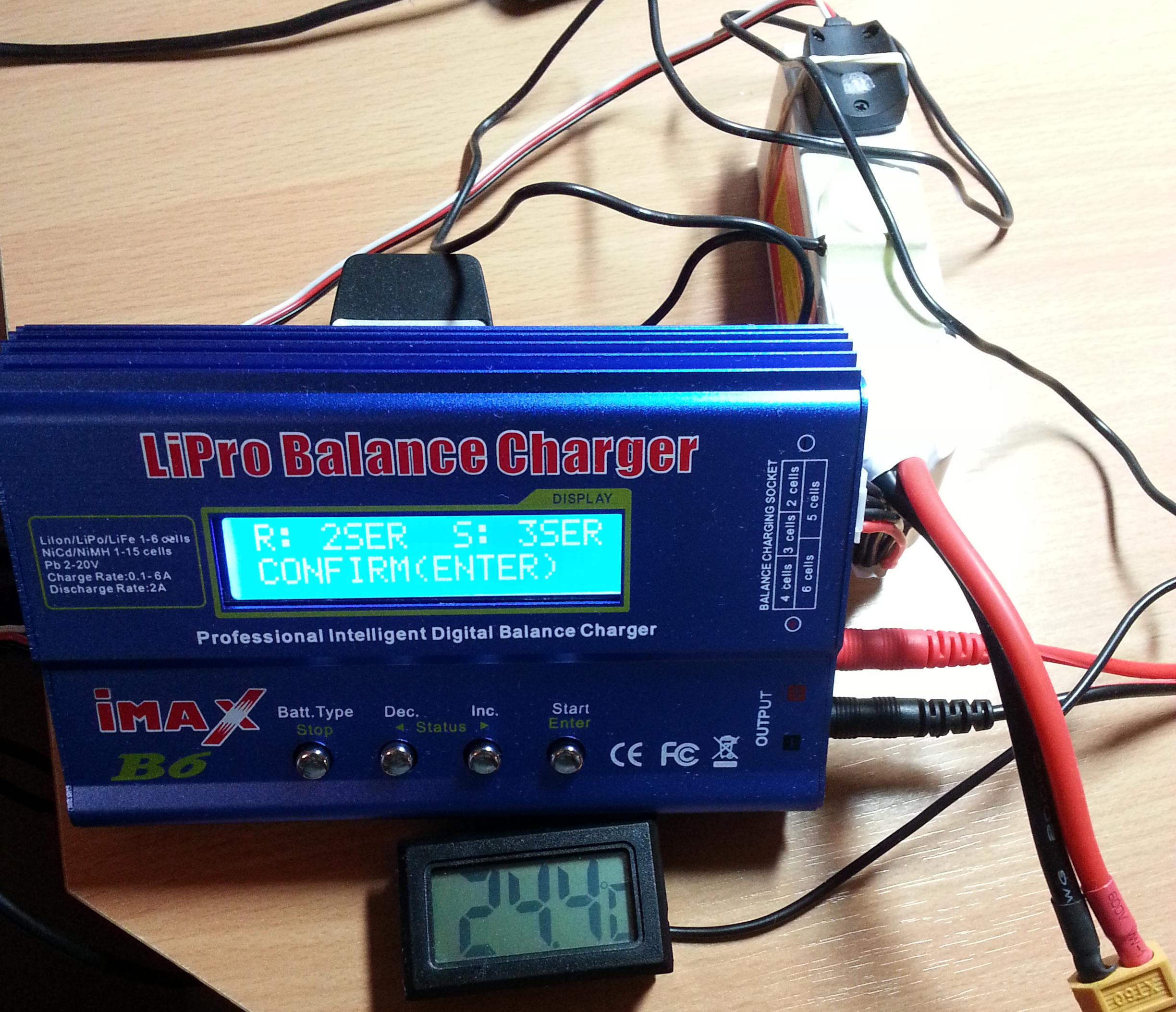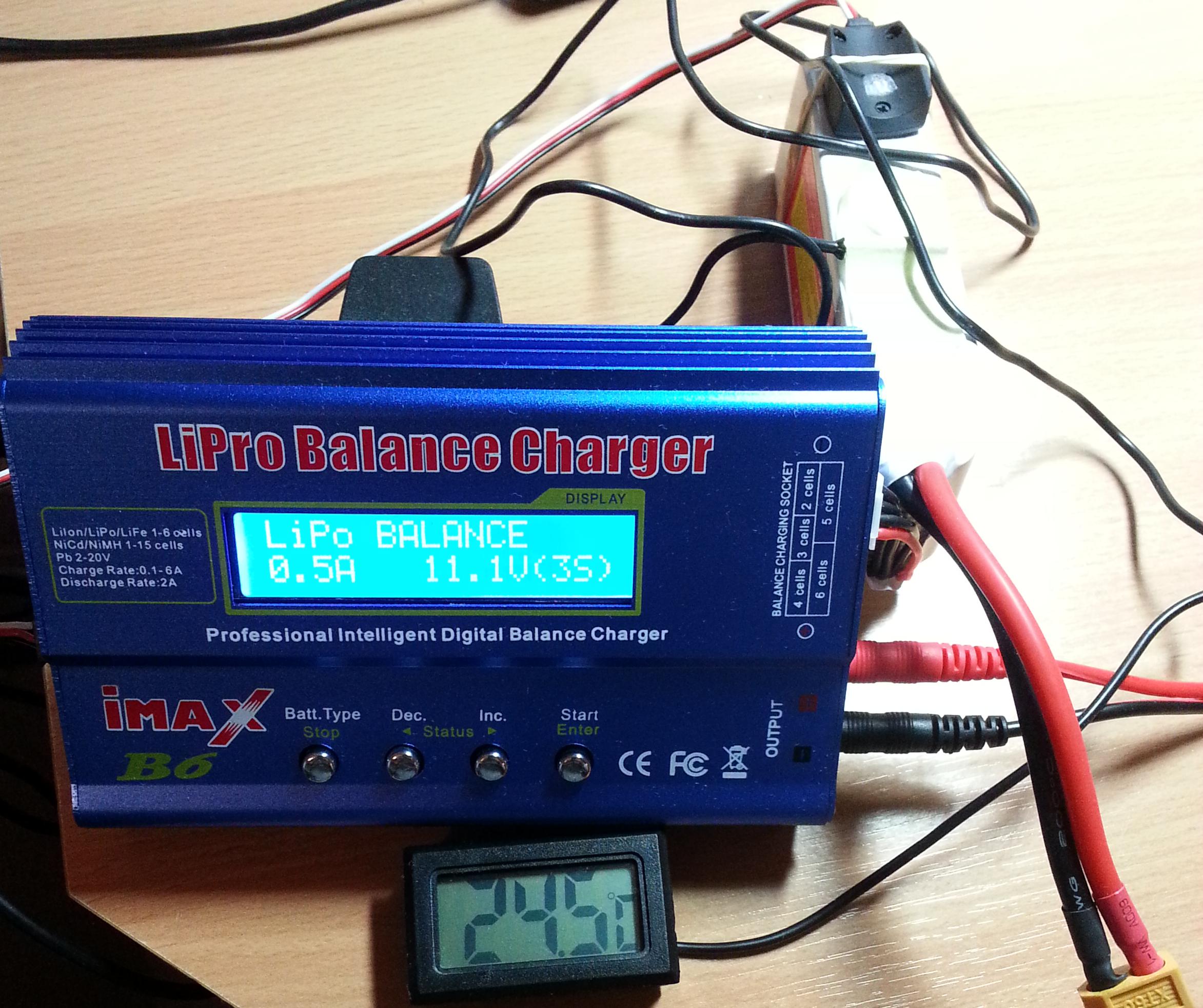 The black one attached with a rubber band is the sensor for the iMAX, you can see that I turned the curved side up, and made a hole to the other side down, so the sensor senses well the batteries temperature.